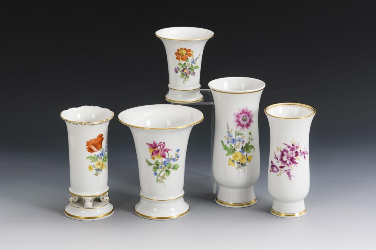5 Vasen mit Blumenmalerei. Meissen.