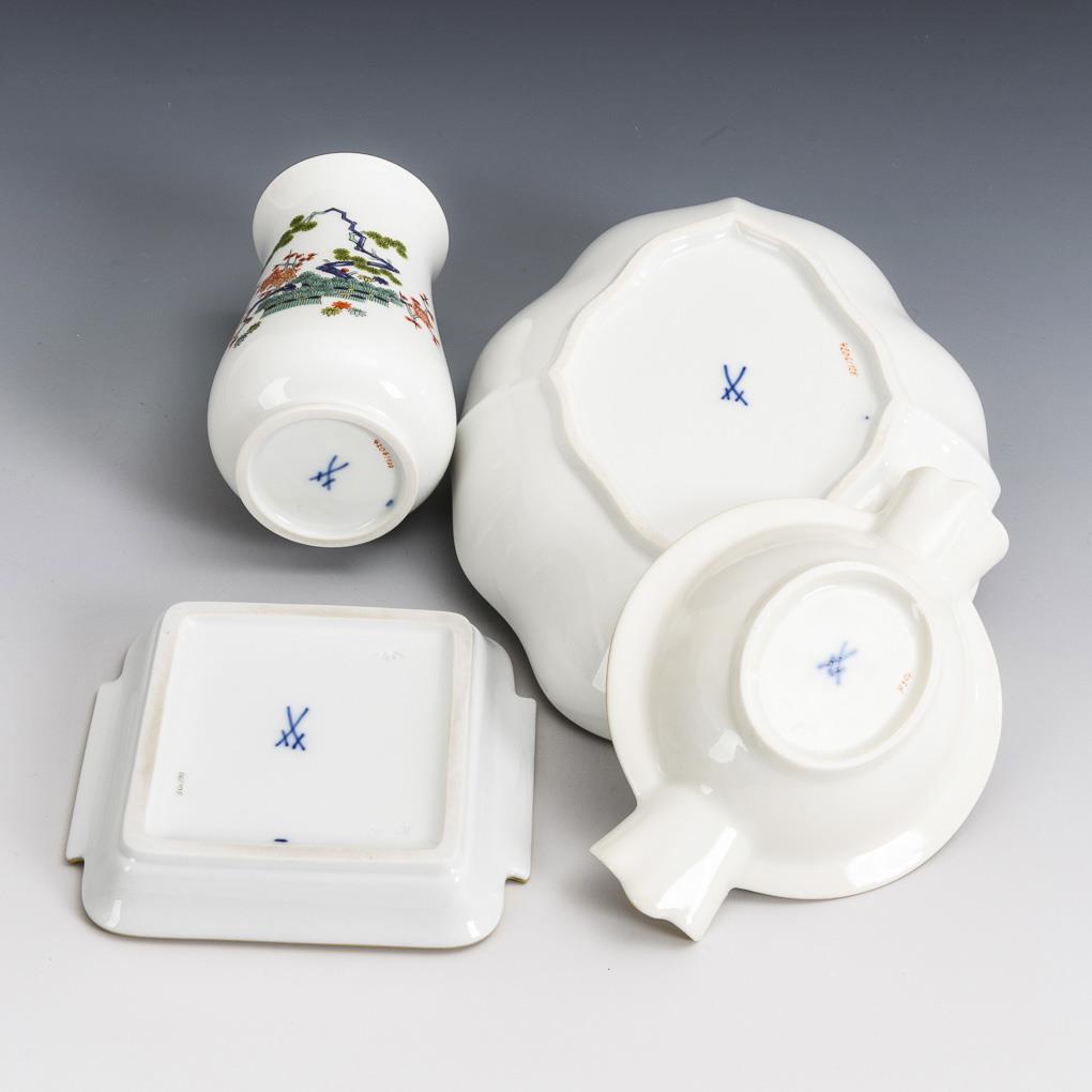 Vase, 2 Ascher und Vierpassschale. Meissen.