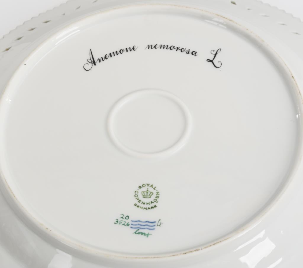 Teller mit teils durchbrochenem Zackenrand. Im Spiegel ein Buschwindröschen, unterseitig lateinisch bezeichnet.