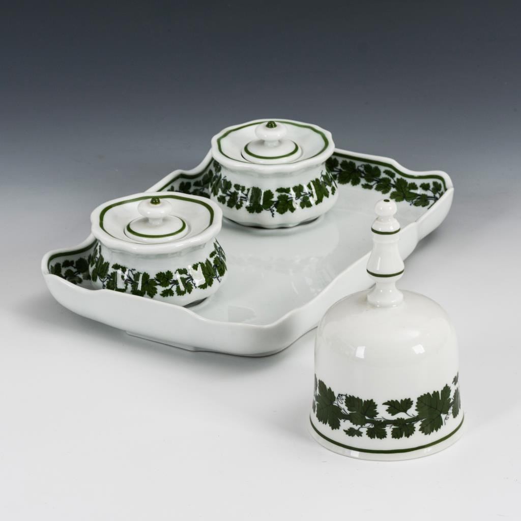 Schreibzeug und Tischglocke mit Weinlaubdekor