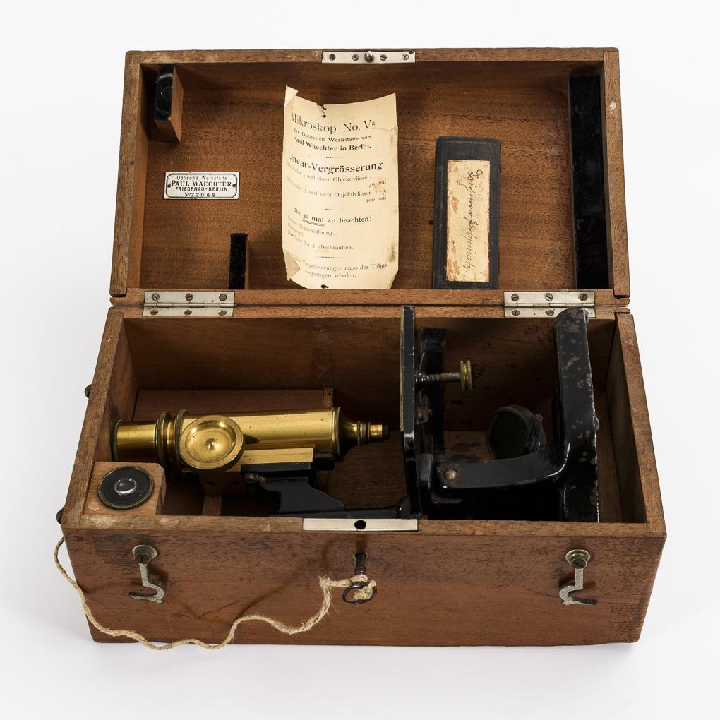 Mikroskop Nr. Va im Kasten. Paul Waechter Friedenau-Berlin.