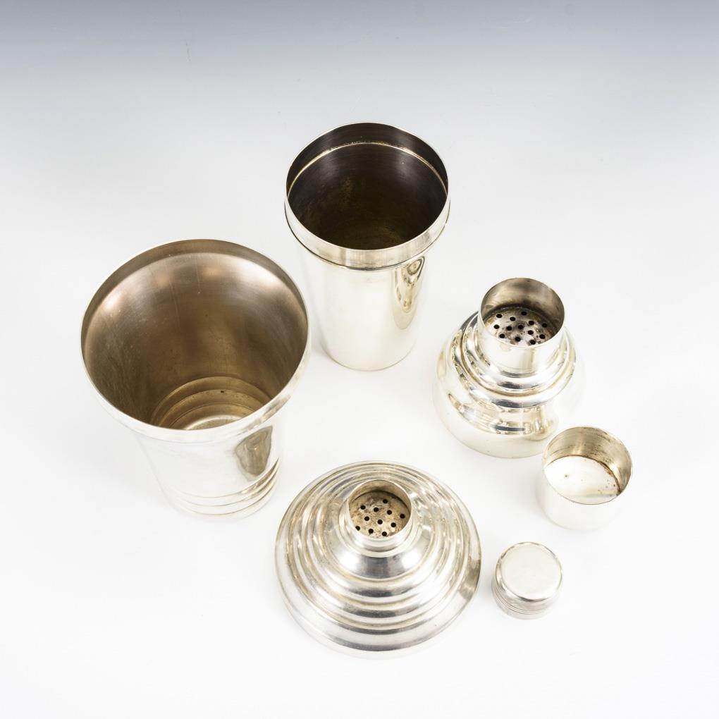 2 versilberte Cocktail-Shaker.