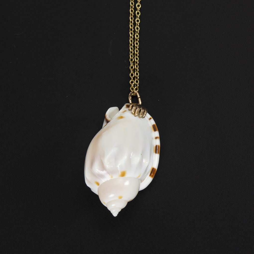Schneckenhaus mit kleiner Handmontierung, an Ankerkette mit Ringfederschließe.