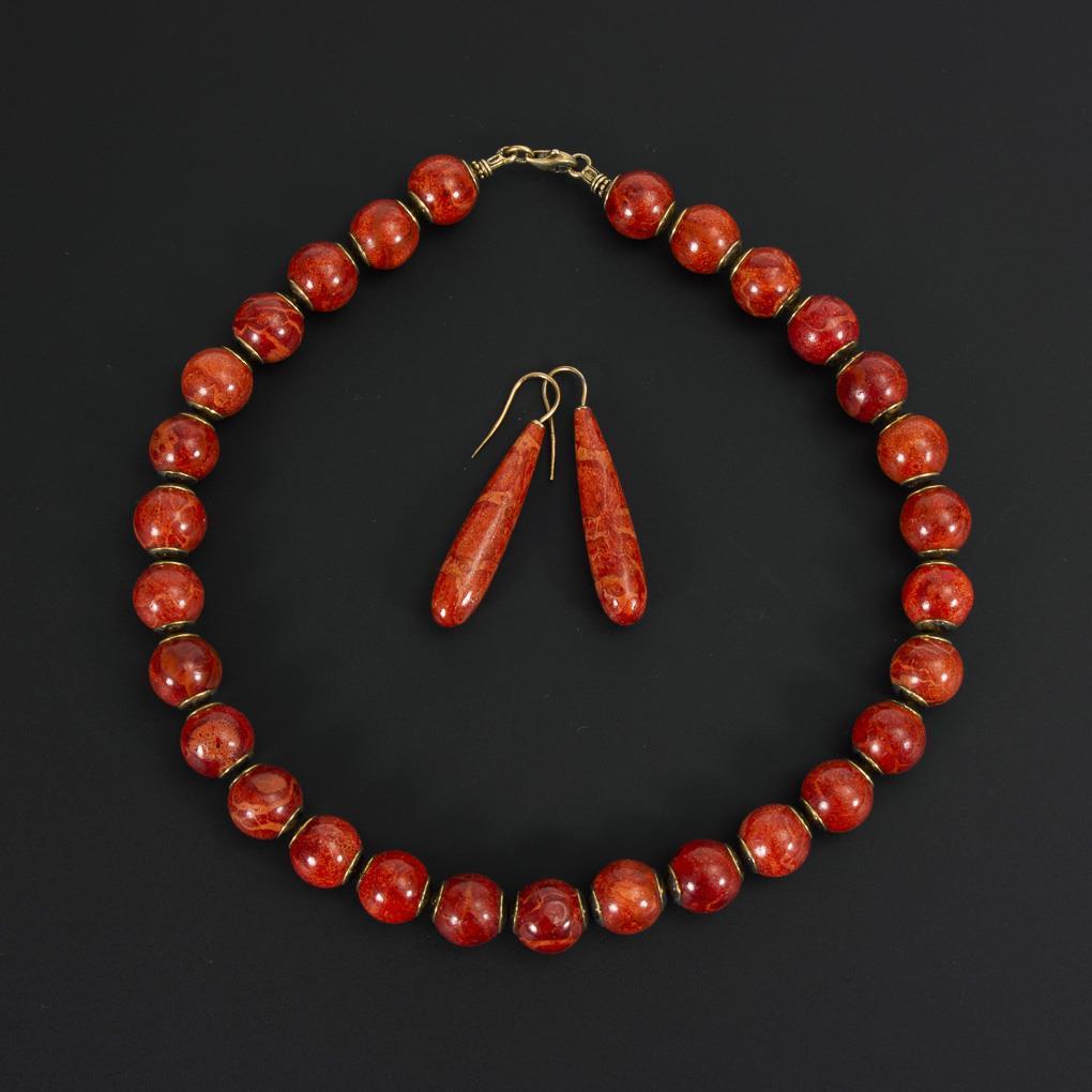 Moderne Schaumkorallenkette und Ohrhängerpaar.
