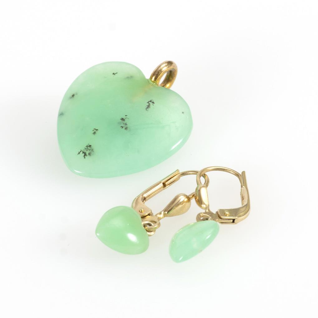 Chrysopras-Anhänger und Ohrhängerpaar.