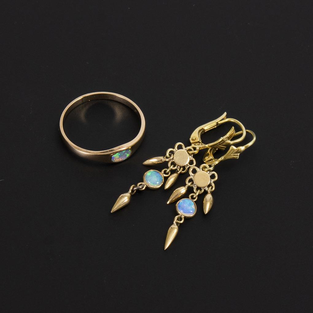 Ohrhängerpaar und Ring mit Opalen.