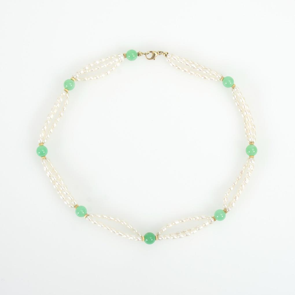 3-reihige Zuchtperlenkette mit Chrysoprasen.
