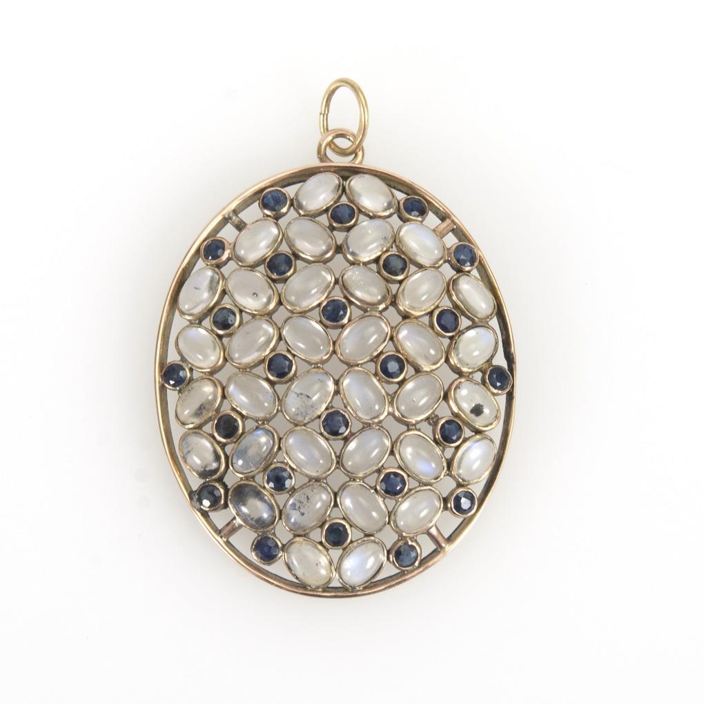 Anhänger mit Mondsteinen und Saphiren.