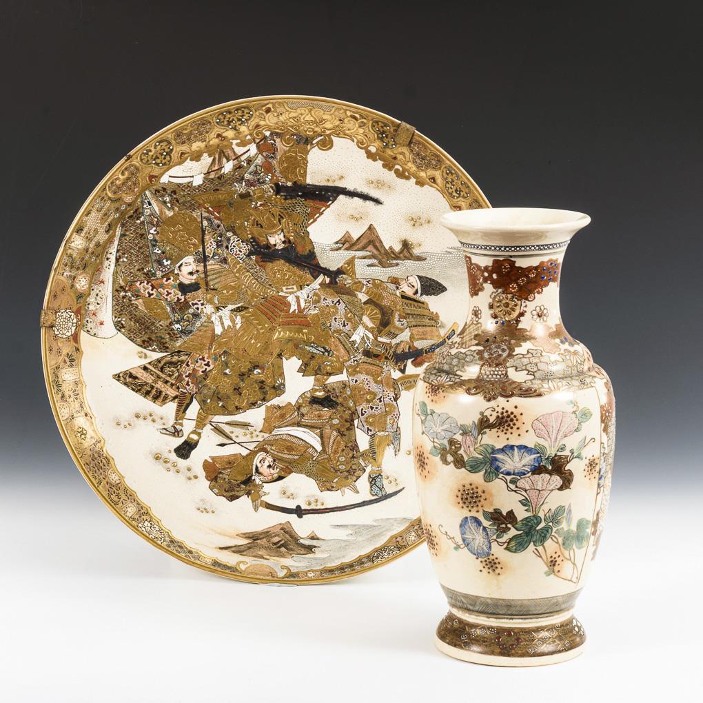 Großer Teller und Vase - Satsuma.