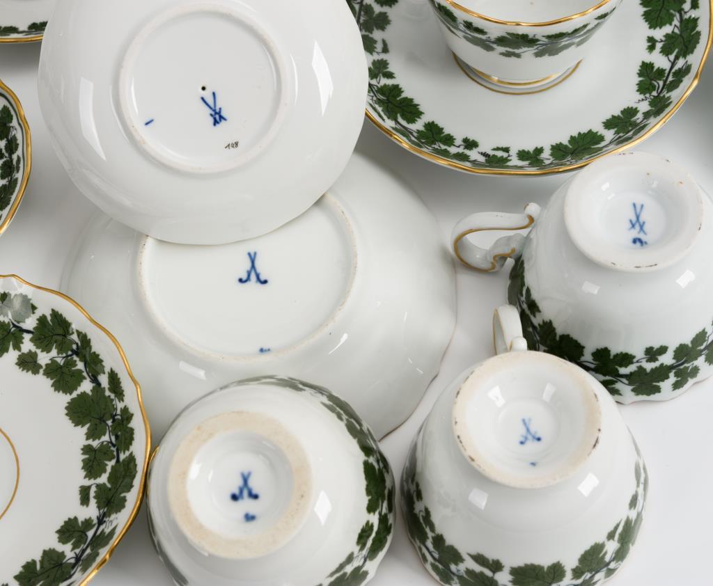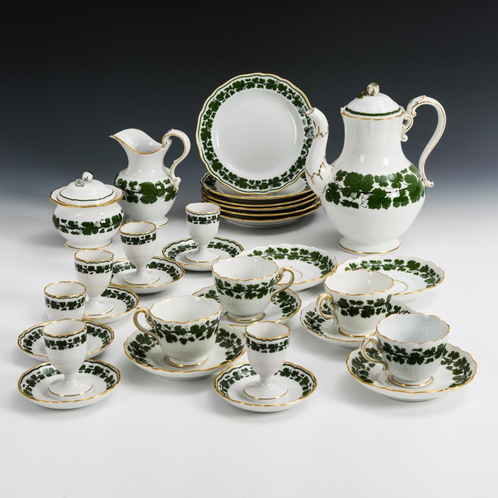 27 Teile. Form "Neuer Ausschnitt". Kaffeekanne (H 23 cm), Milchkännchen, Zuckerdose, 6 Kaffeetassen, 6 Untertassen, 6 Kuchenteller und 6 Eierbecher. Rosenknauf der Kanne minimal bestoßen.