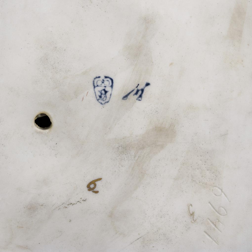 Biskuit, elfenbeinfarben mit bräunlicher Schattierung, grün- und goldstaffiert. H 27,5 cm.