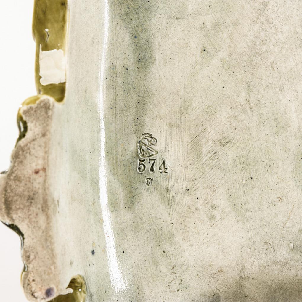 Historistischer Tafelaufsatz: Majolika-Kutsche mit Leoparden. Majolika- und Steingutfabrik R. M. Krause.