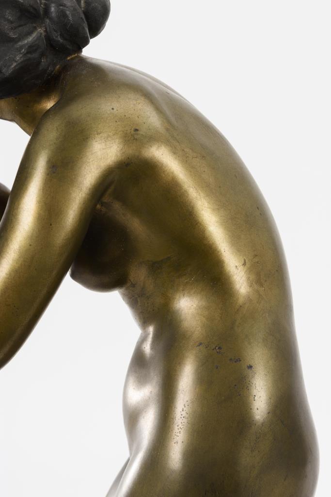 Bronze zweifarbig patiniert, schwarzer Marmor-Sockel.Bezeichnet.H 62 / 71 cm.