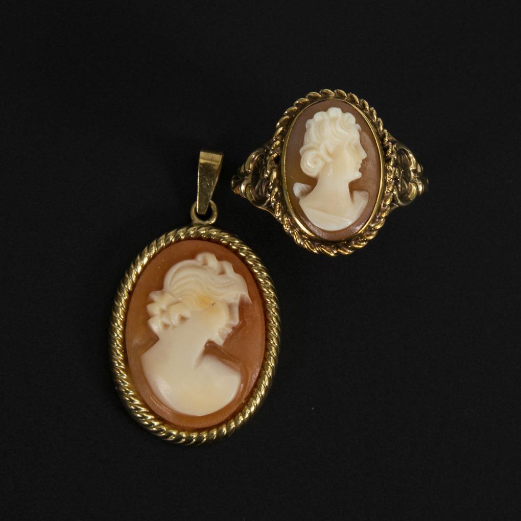 Muschelkamee-Anhänger und Ring.