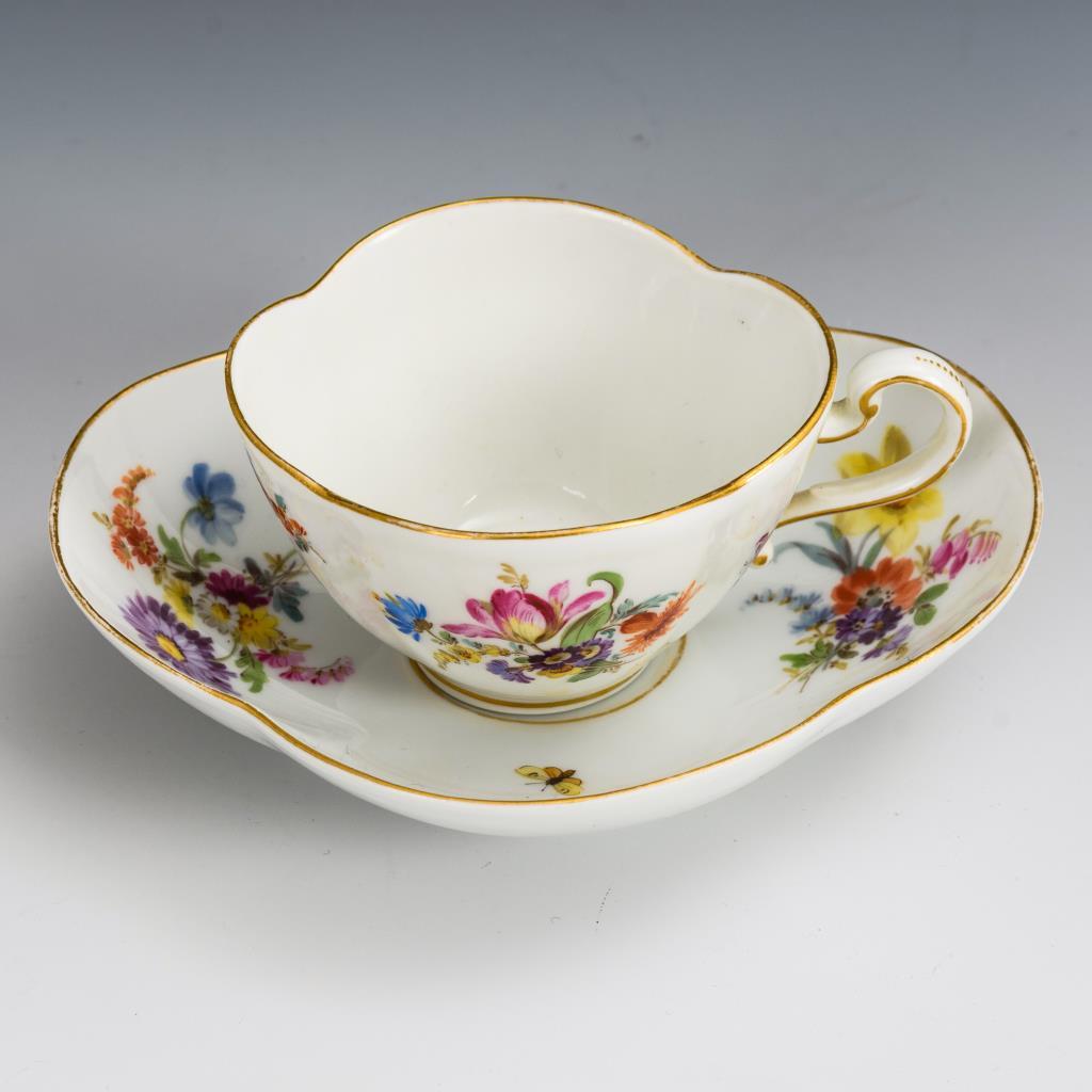 Vierpasstasse mit Blumen- und Insektenmalerei