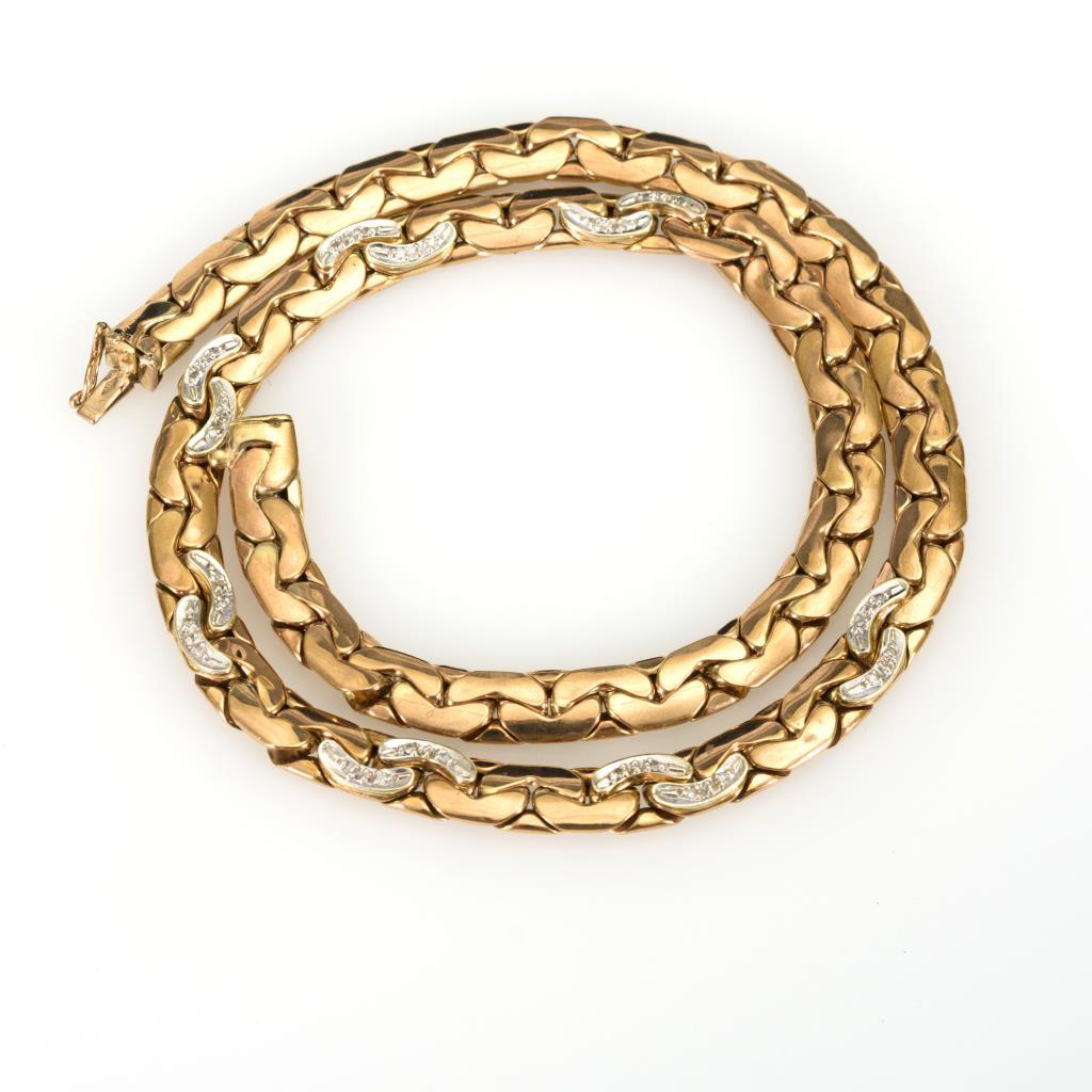 Flache Panzerkette mit 24 Kleinst-Diamanten. Kastenschloss mit Achtersicherung.