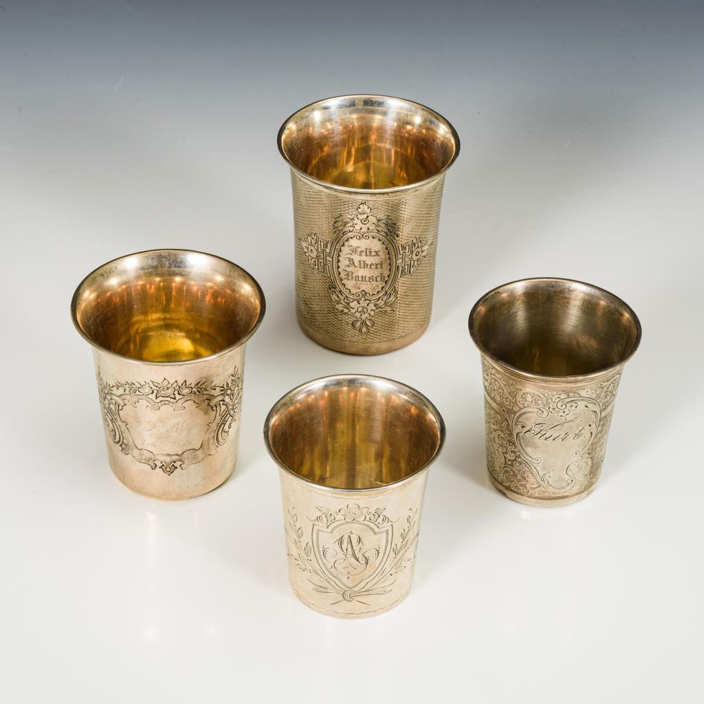4 gravierte Silberbecher