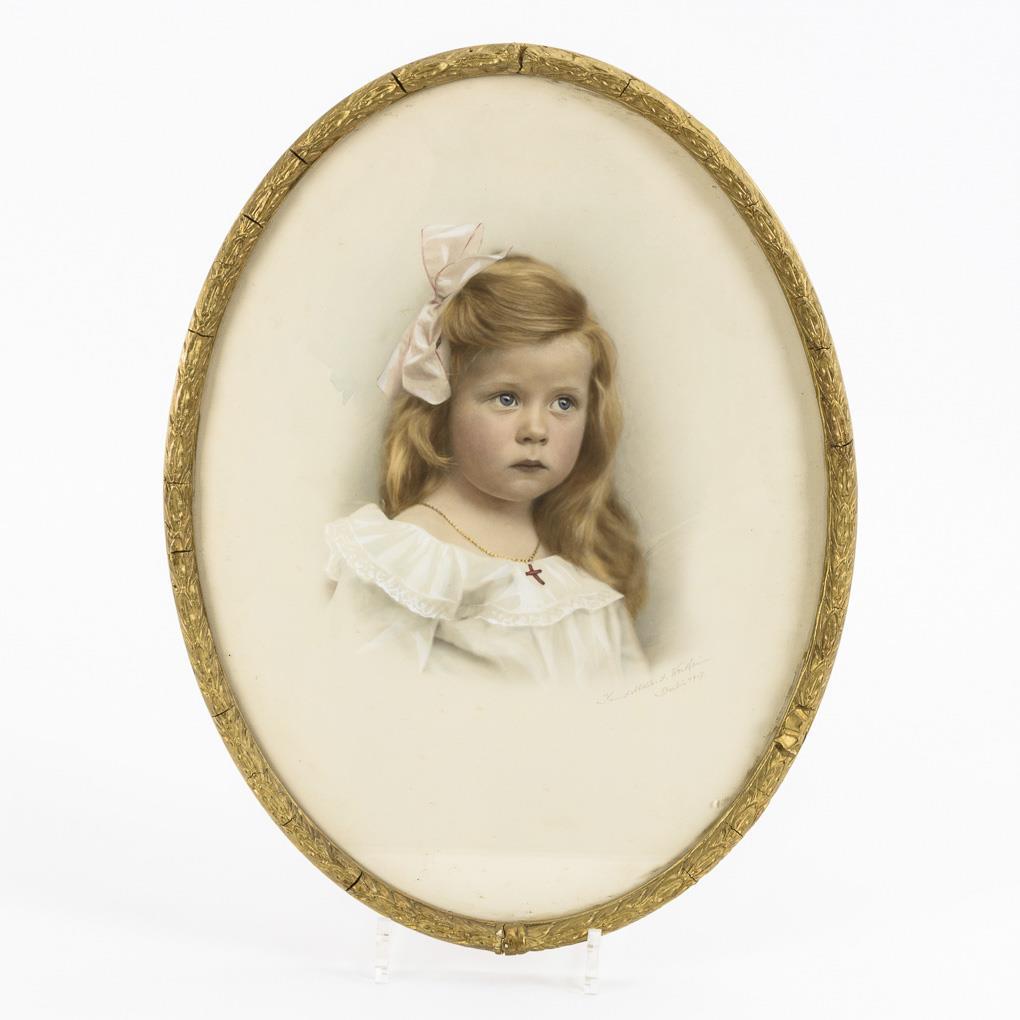 Mädchenbild im ovalen Rahmen. "Kunst-Atelier A. Wertheim, Berlin".