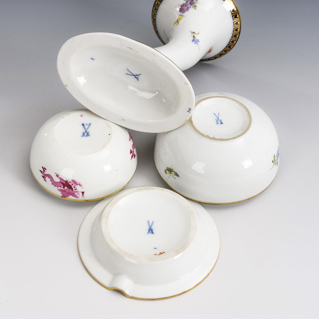 Vase, Ascher und 2 Dosen. Meissen.
