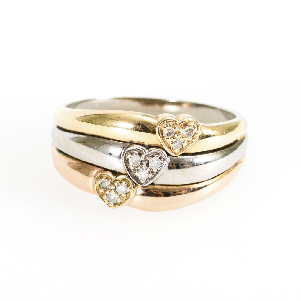 3-farbiger Ring mit Diamanten.