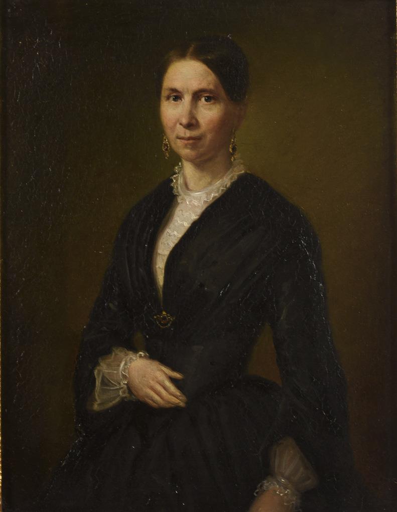 Bildnisse eines Ehepaares in schwarzer Kleidung vor neutralem Hintergrund. Pendants sind die Lose (1430) und (1431). Die Dargestellten gehören zur gleichen Familie. Altersspuren.