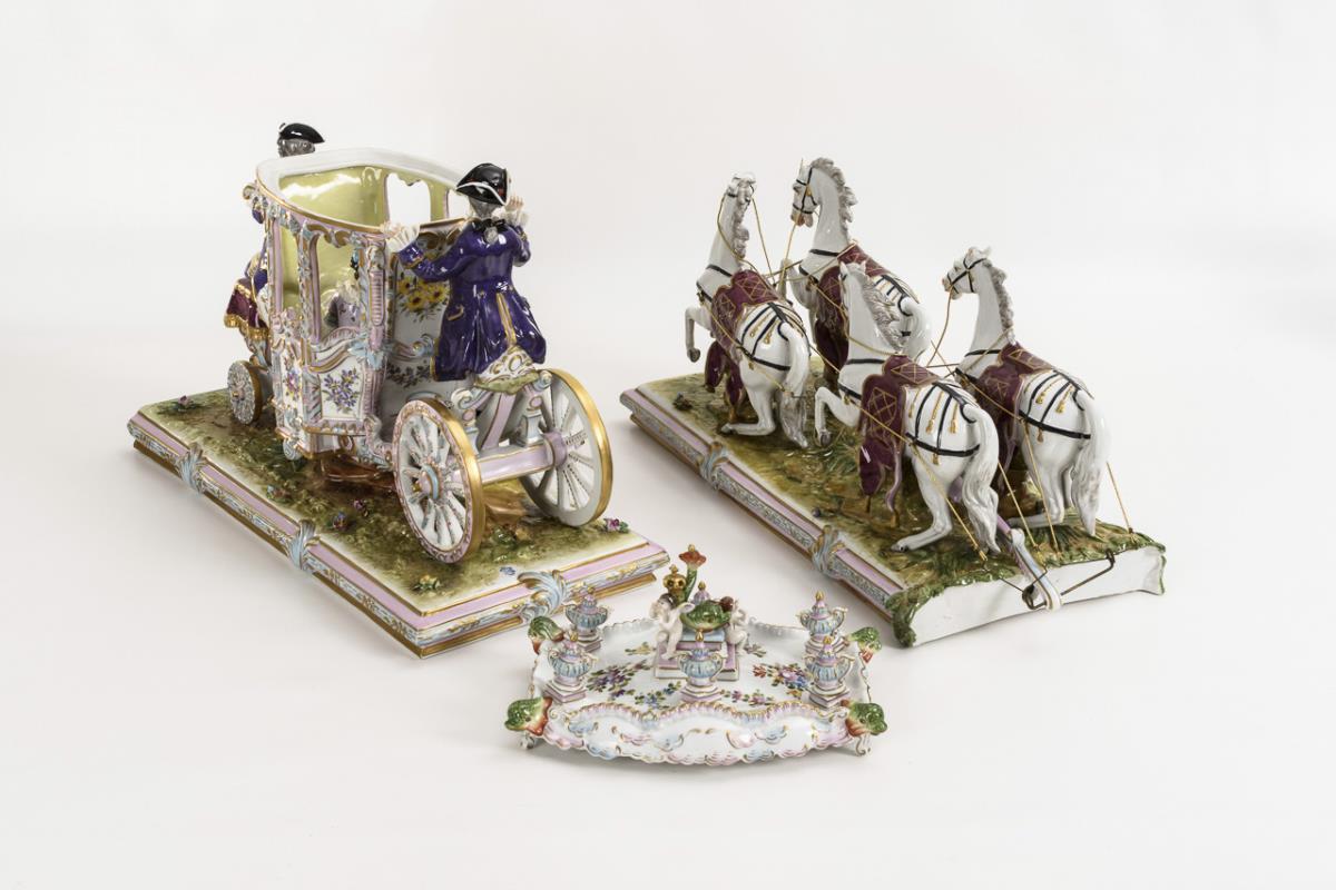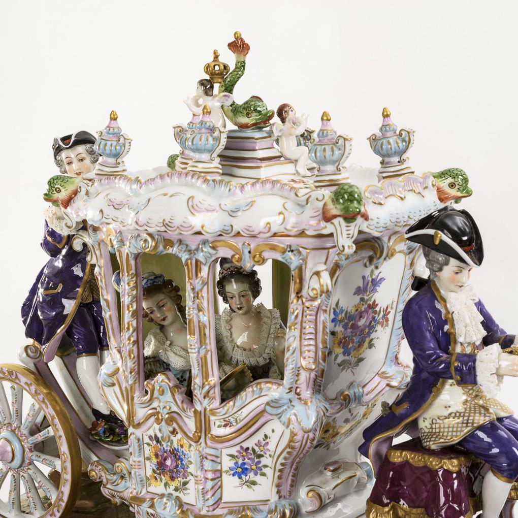 Vierspännige Rokoko-Kutsche mit zwei Rokoko-Damen, Kutscher und Diener | Nachtrag 14.10.21: Fischflossenspitze geklebt.