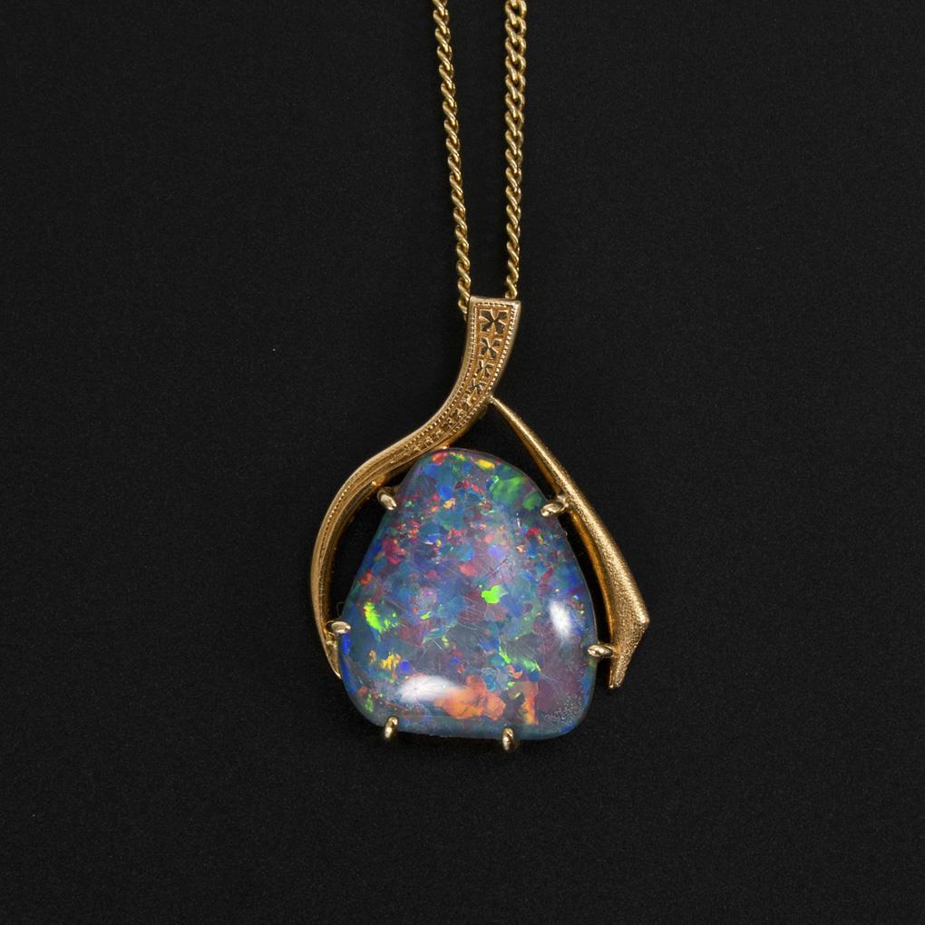 Anhänger mit Opaltriplette an Kette.