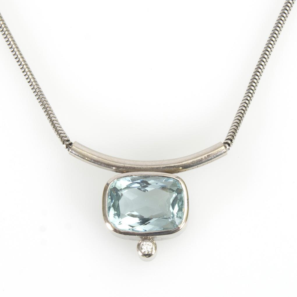 Aquamarin-Collier mit Brillant.