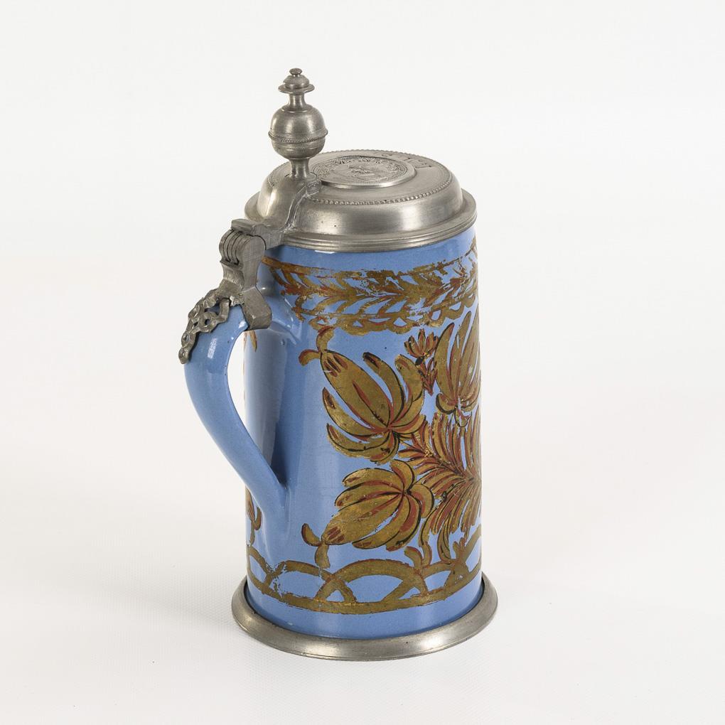 Blauer Fayence-Walzenkrug. Schrezheim.