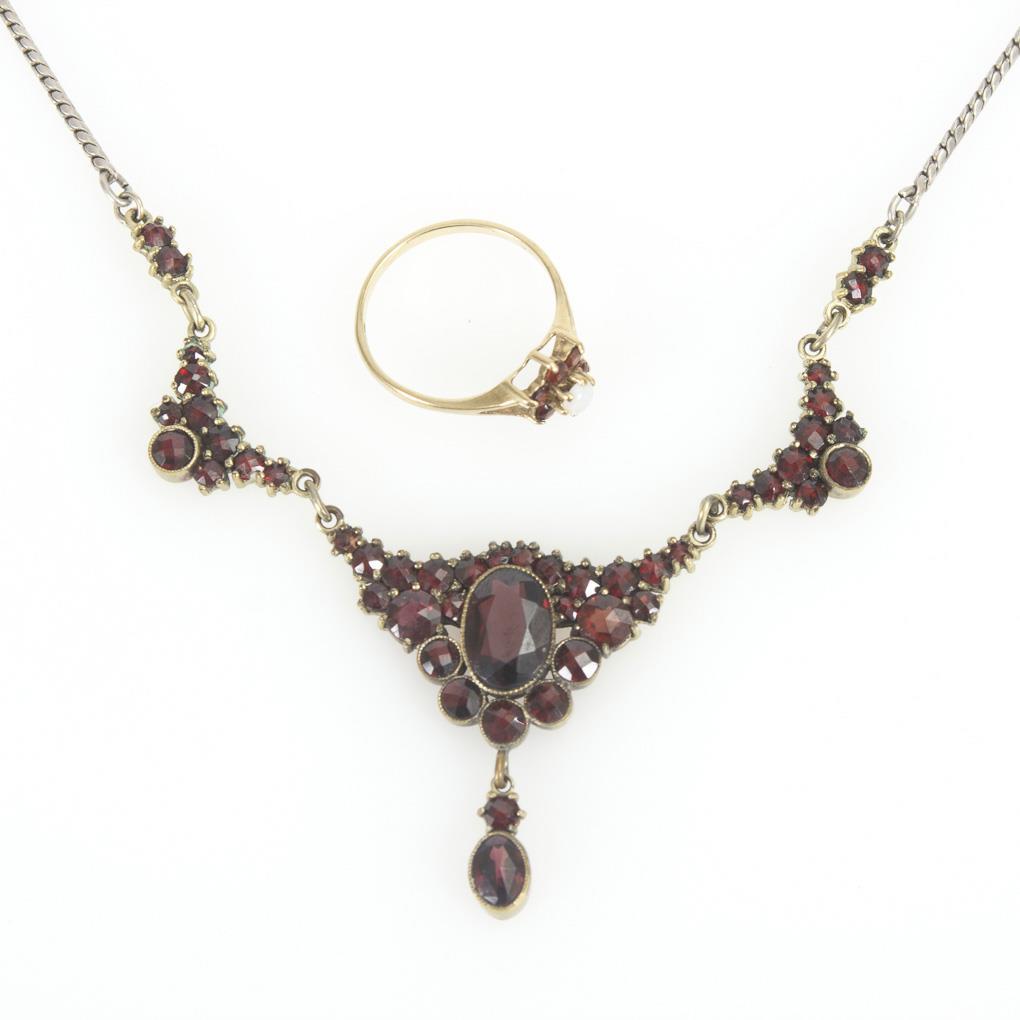 Granatcollier und Ring.