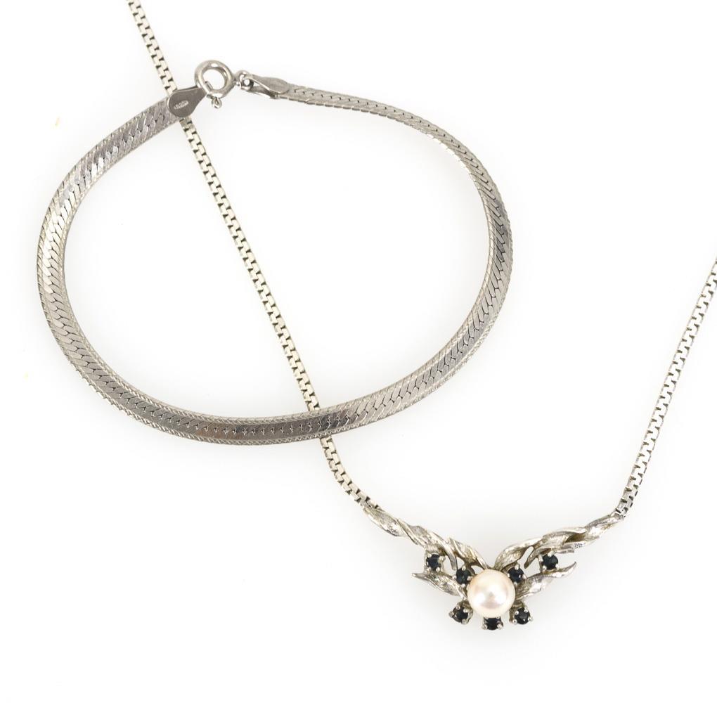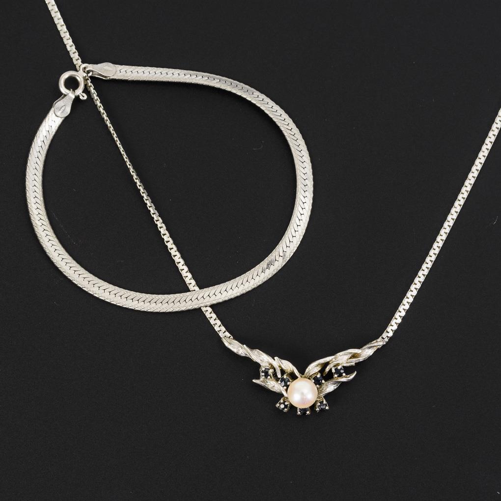 Silber 835/925 gestempelt. Collier L 43 cm. Armband L 19 cm. 6,6/4,2 g.