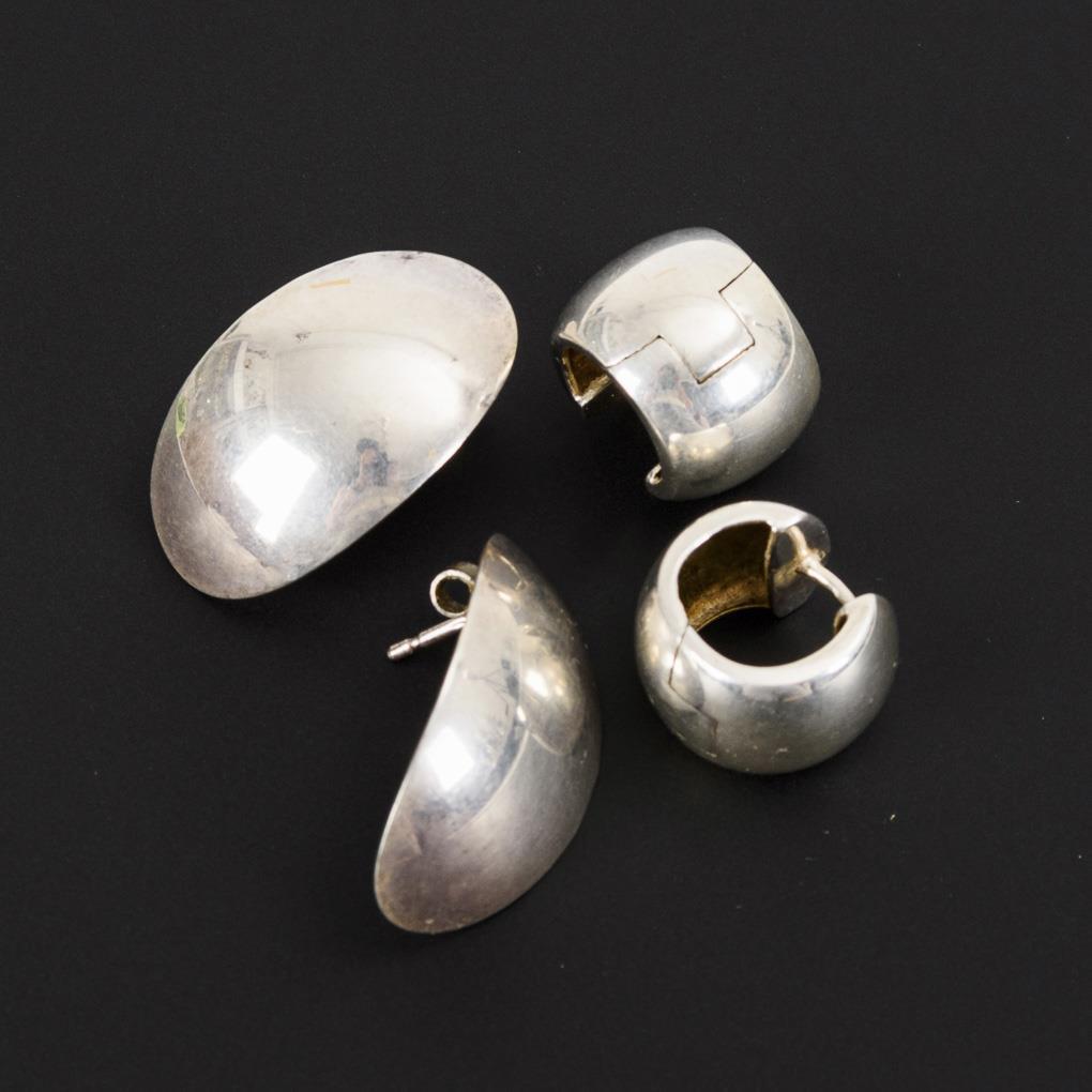 Silber geprüft. Ø 1,4 cm. 2,5 x 1,5 cm. 7,8/5,1 g.