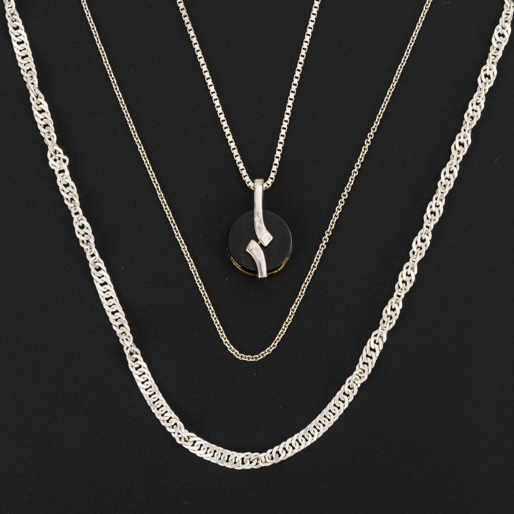 Silber 835/925 gestempelt. Anhänger Ø 1,3 cm. Ketten L 49/51/50 cm. Gesamt 18,4 g.