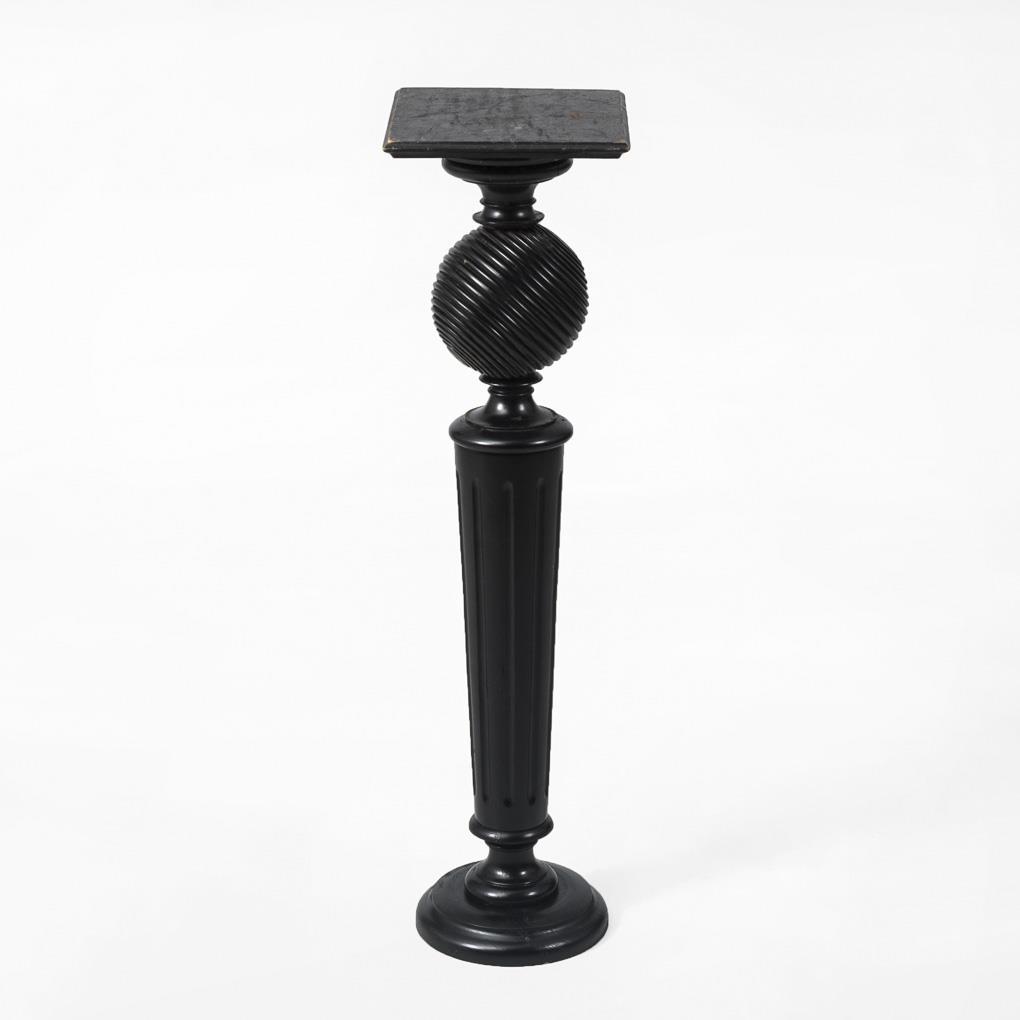 Blumensäule mit Rundfuß, kanneliertem Schaft, gerillter Kugel und quadratischer Deckplatte. Schraubgewinde. Alters- und Gebrauchsspuren, Defekte.