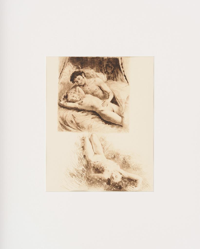2 Radierungen in Sepia auf handgeschöpftem Hodomura-Papier. Leblanc, Paris 1959.