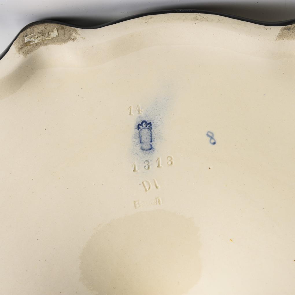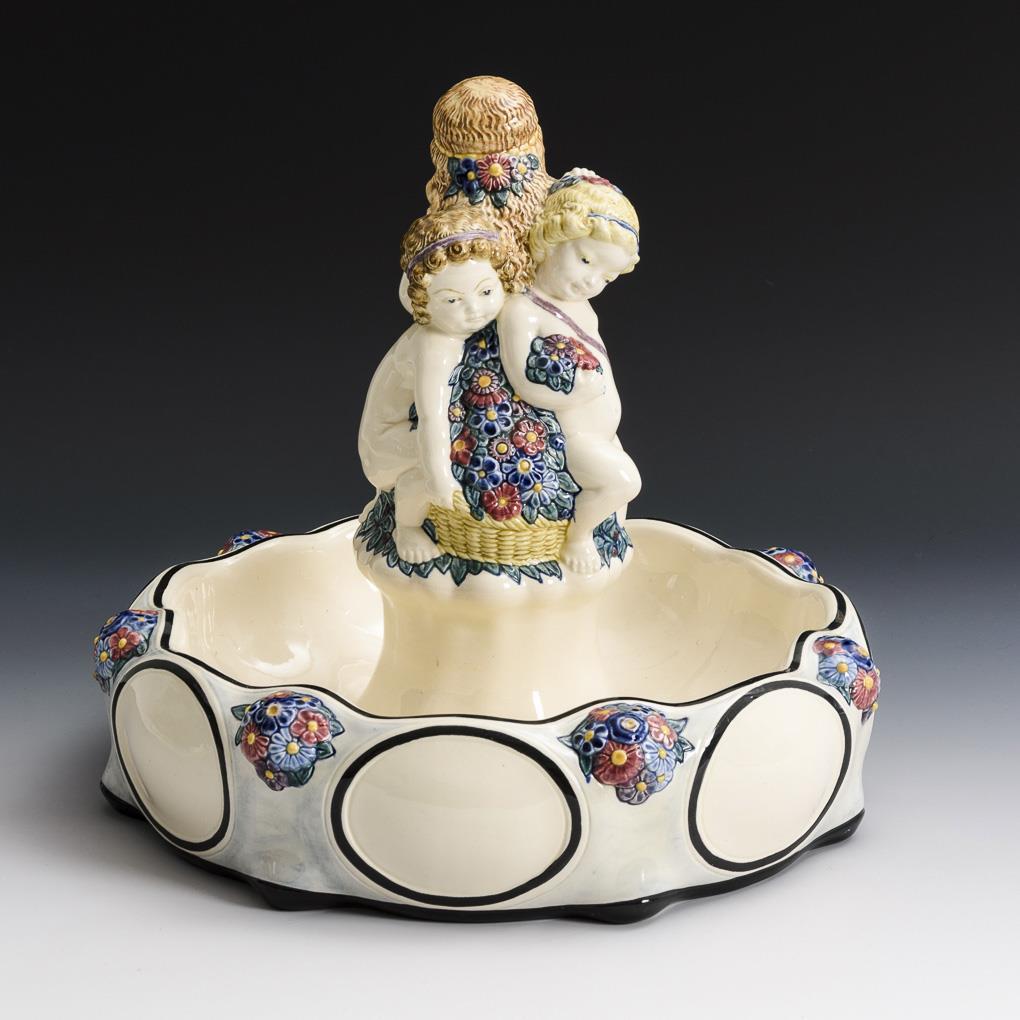 Große Jugendstil-Fruchtschale mit 3 Mädchen. Karlsruher Majolika.
