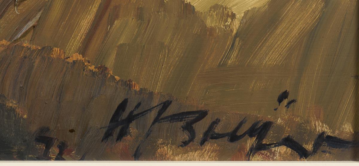 Öl/Malkarton. Rechts unten signiert, verso bezeichnet/betitelt sowie Todesanzeige des Künstlers.