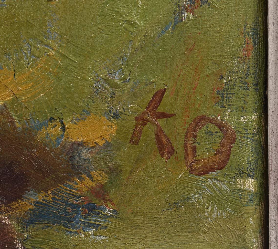 Öl/Leinwand. Rechts unten monogrammiert, verso auf Klebezettel bezeichnet/betitelt.