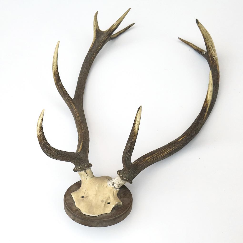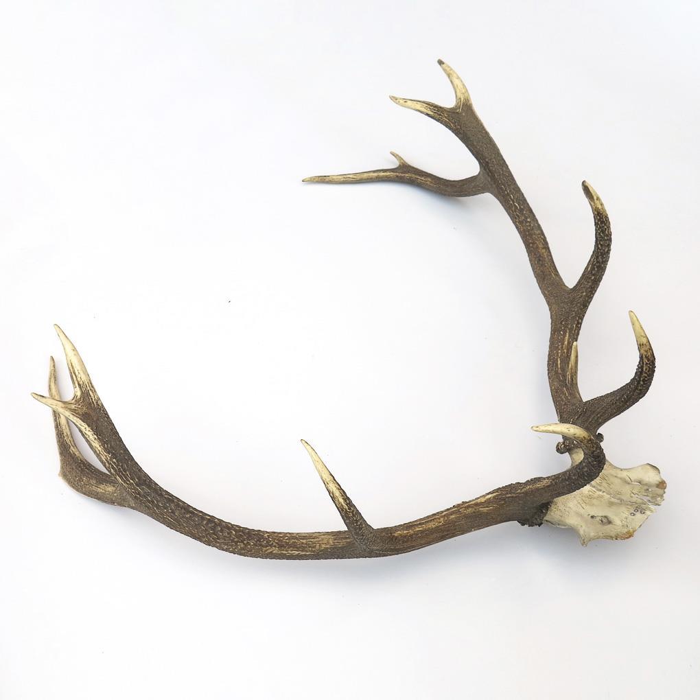 12 Ender mit Beschriftung "H. XXII 1899..." (Heinrich XXII. von Reuß zu Greiz sowie ungarischer Name). Ungerader 10 Ender. Wohl ungerader 14 Ender. Stirnblatt des beschrifteten 12 Enders defekt, 2 Montageansätze des 10 Enders defekt, am 14 Ender 2 Enden vermutlich im Kampf verloren und verwachsen.