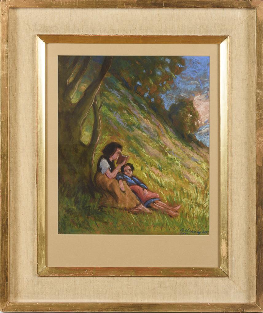 Undeutlich signiert: Zwei Mädchen auf der Wiese