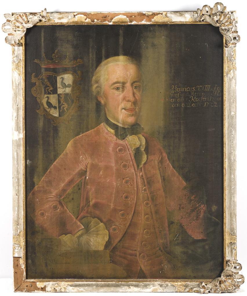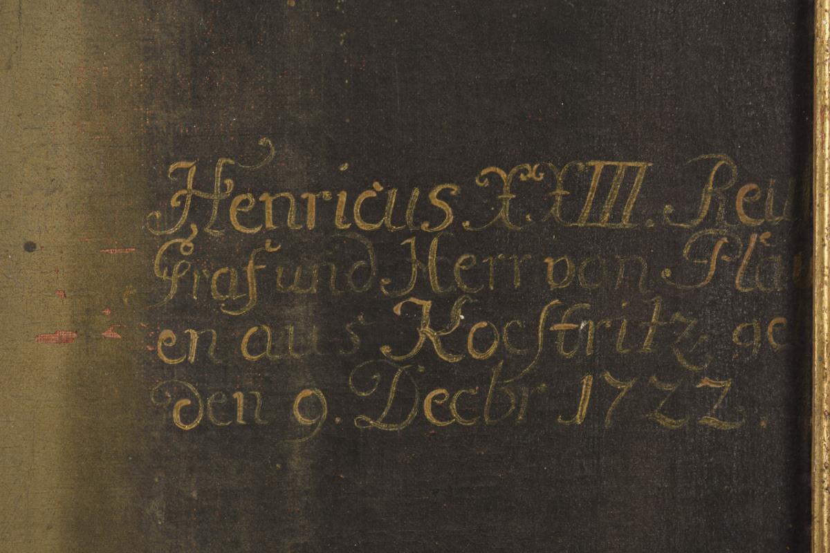 Öl/Leinwand. Rechts oben Schriftzug "Henricus XXIII. Reuß Graf und Herr von Plauen aus Koestritz geb. den 9. Decbr 1722".