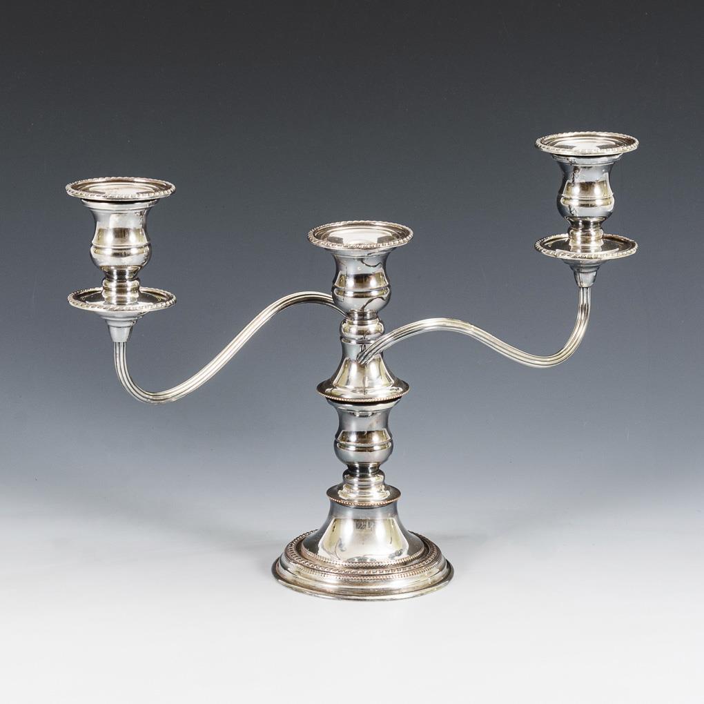 3-flammiger Leuchter mit Balusterschaft und 2 elegant geschwungenen Armen. Gebrauchsspuren, Versilberung berieben.