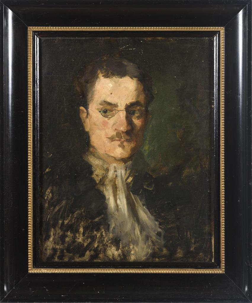 Impressionistisches Bildnis des Historienmalers, welches wohl entstanden ist, als Böcklin und Brünner die Kunsthalle Basel ausgemalt haben. Sandreuter war Böcklins engster Schüler. Altersspuren.