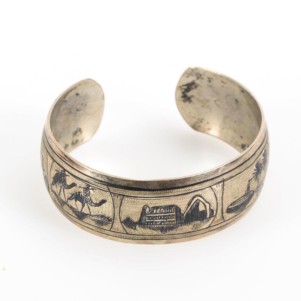 Runder, offener Reif mit teilgeschwärzten Motiven.