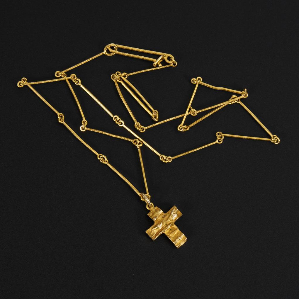 Strukturiertes Lappenkreuz an Stabgliederkette mit gesichertem Hakenverschluss.