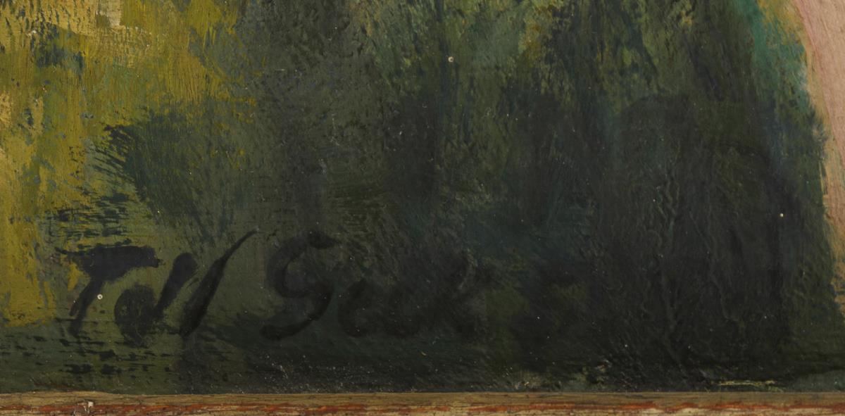 Öl/Malkarton. Links unten undeutlich signiert, Rahmenschild mit Aufschrift "Internationales Solitude-Rennen 1955. Der Oberbürgermeister der Stadt Stuttgart". Um 1955.