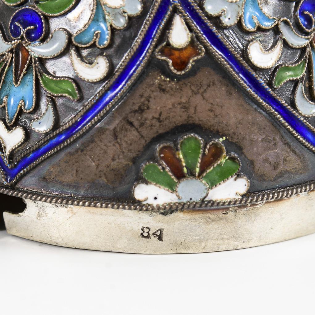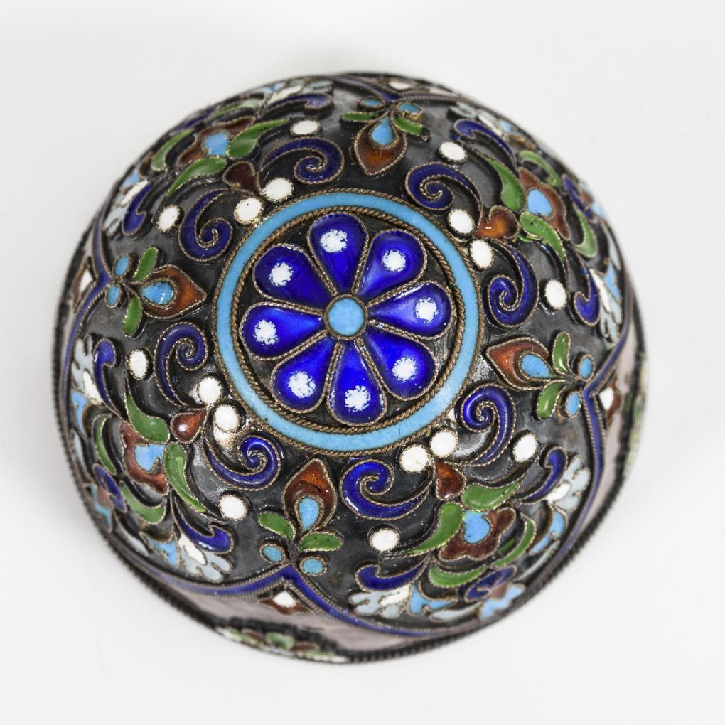 Silber, farbiges Email, schwarze Schachtel. H 6,5 cm. 49 g.