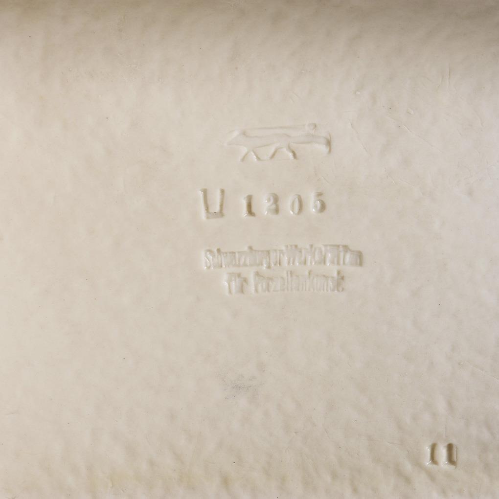 Geprägte Schriftmarke und Prägemarke Schnürender Fuchs, vor 1926. Monogrammiert. Modell-Nr.: U 1205. Entwurf: um 1919. STORCH, Arthur(1870 Volkstedt – 1947 Rudolstadt)