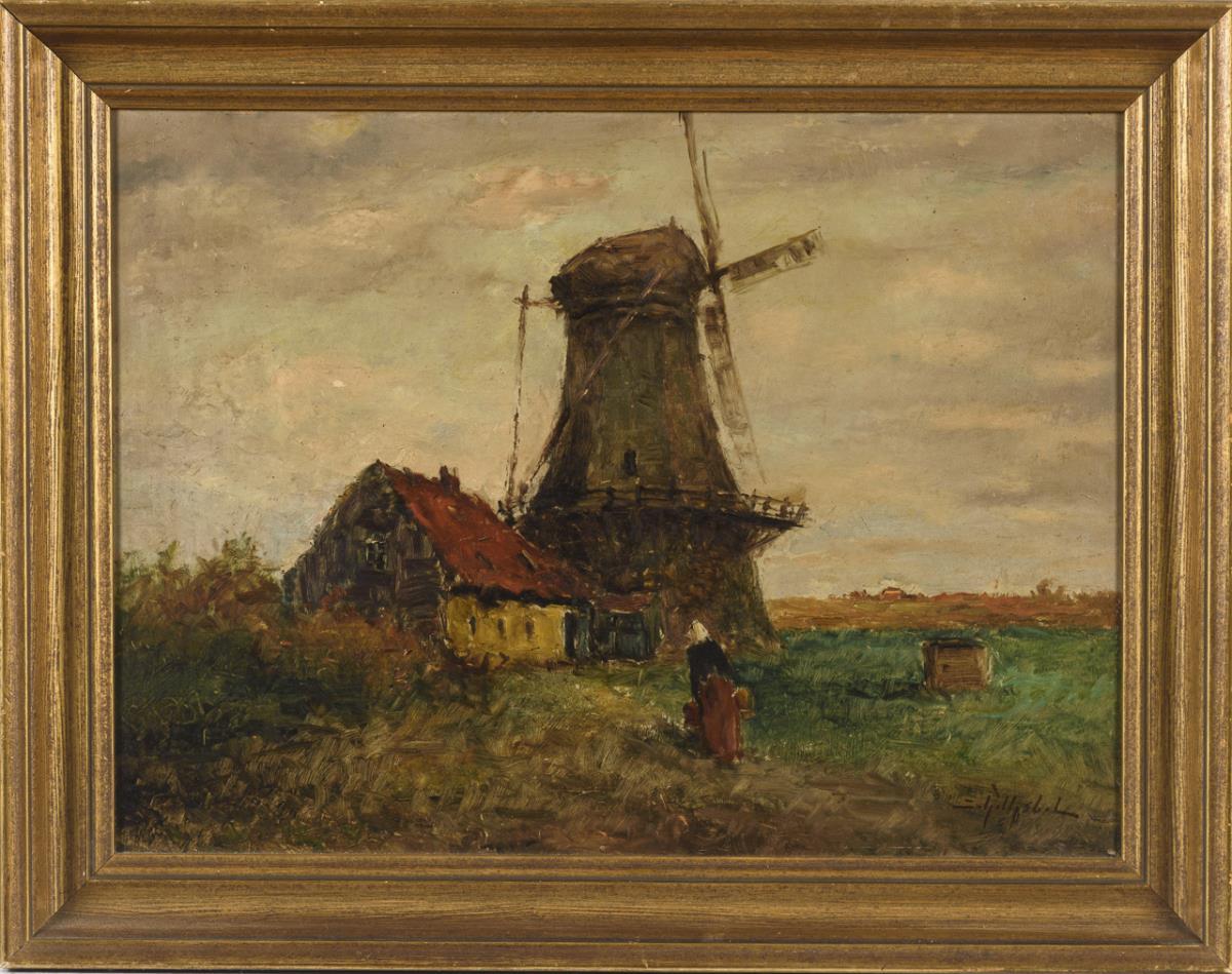 Undeutlich signiert: Mühle mit Bäuerin