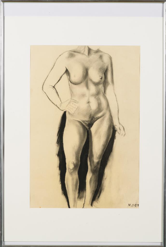 Studie eines stehenden weiblichen Aktes. Minimal fleckig und gewellt.